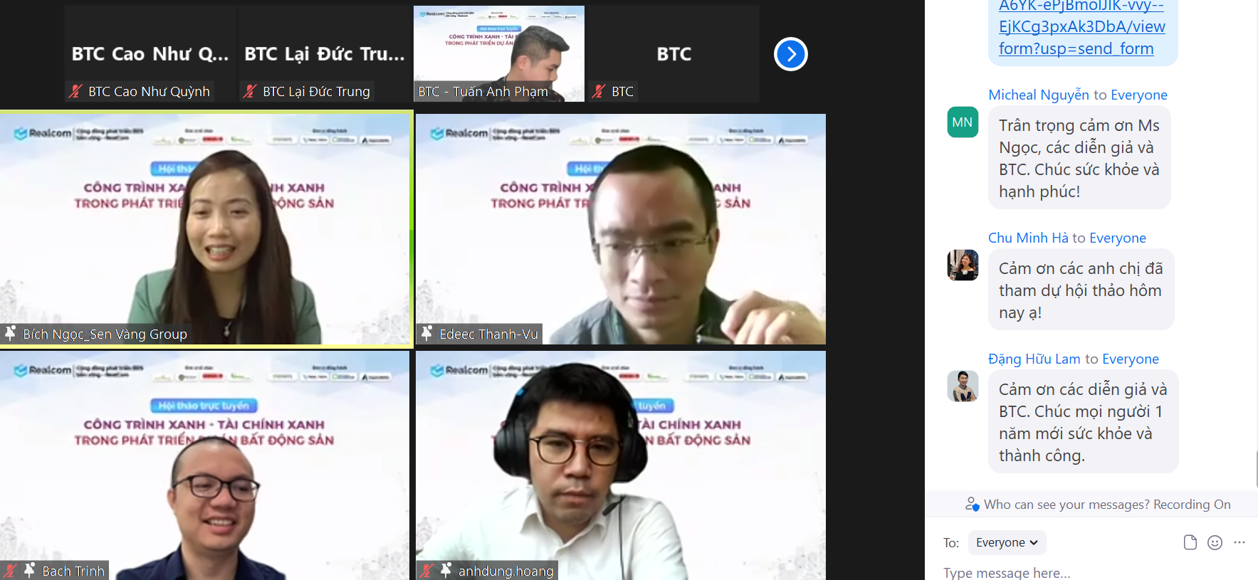 3.3 Hội thảo trực tuyến với chủ đề: “Công trình xanh – Tài chính xanh trong phát triển dự án bất động sản” do Realcom tổ chức