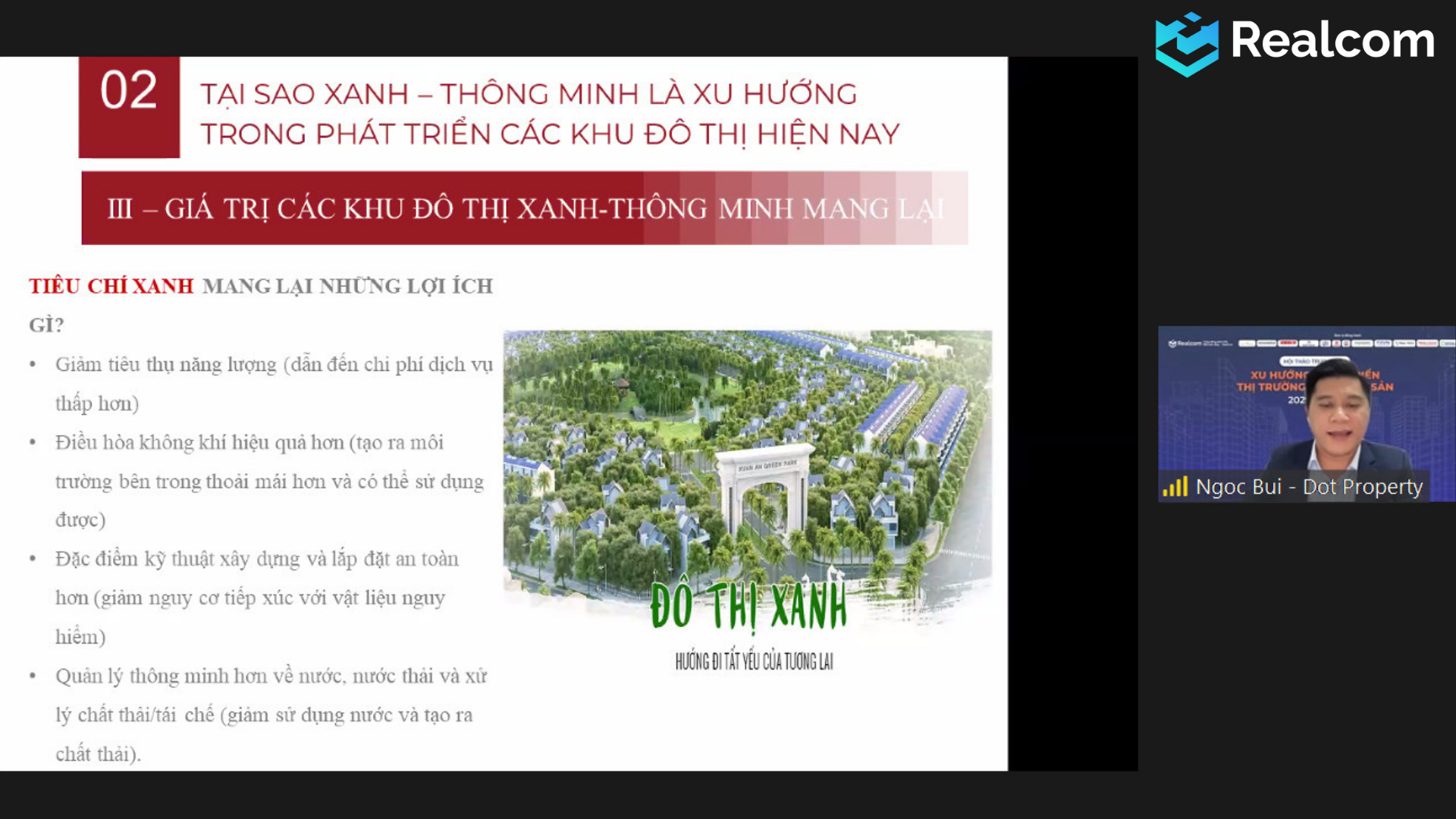 Cuối cùng là phần chia sẻ của diễn giả Ngọc Bùi, Trưởng ban tổ chức Dot Property Vietnam awards, cũng là thành viên ban sáng lập Realcom.